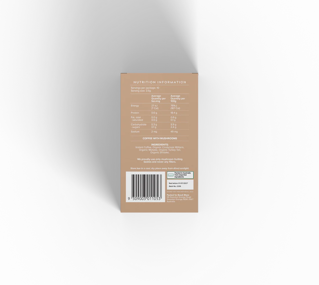 Our premium coffee is enhanced with four potent mushrooms creating a smooth blend with aromas of chocolate nuts and caramel that provides an uplifting, satisfying experience.